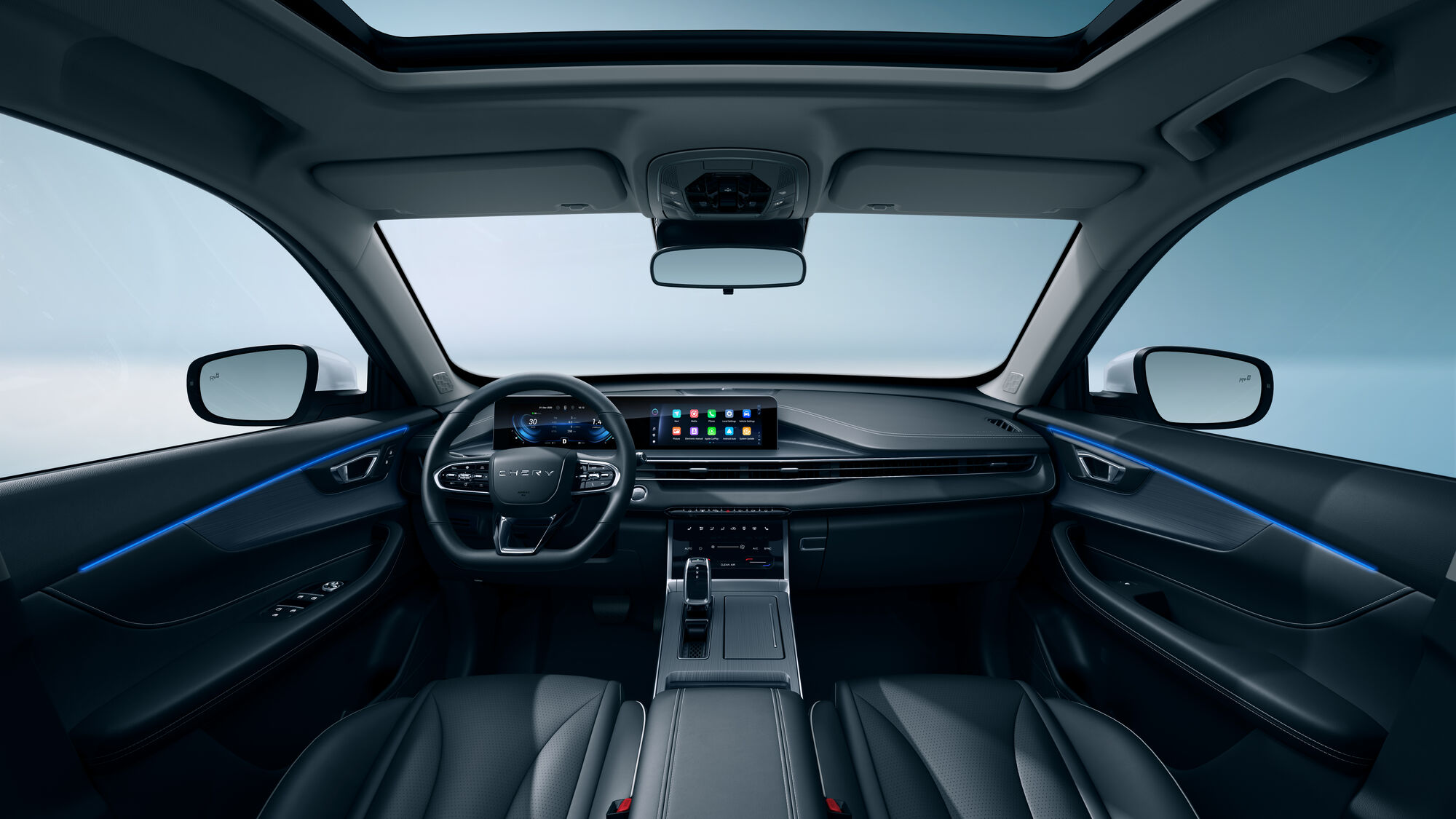 Зазирніть усередину TIGGO 4 Hybrid і відкрийте для себе салон, який дивує просторістю та ергономікою. Кожна деталь продумана для вашої зручності – система безключового доступу, кнопковий запуск двигуна та двозонний клімат-контроль створюють атмосферу комфорту з першої секунди подорожі.