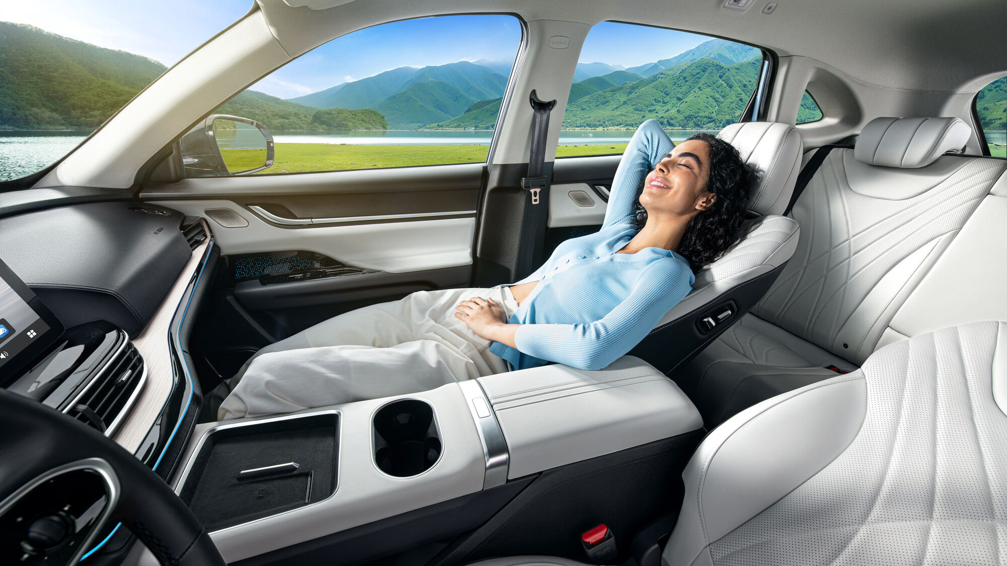 Комфортні підголівники з регулюванням, передній підлокітник із вбудованим боксом, вентиляція та підігрів передніх сидінь.