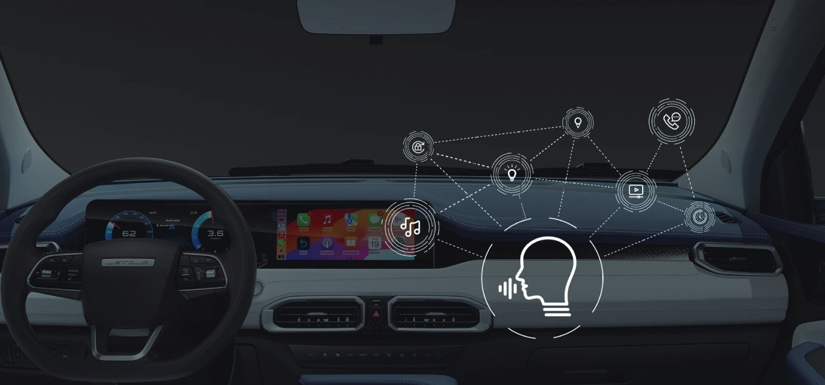 Управління за допомогою голосових команд дозволяє водію легко керувати різними функціями не відволікаючись від дороги.