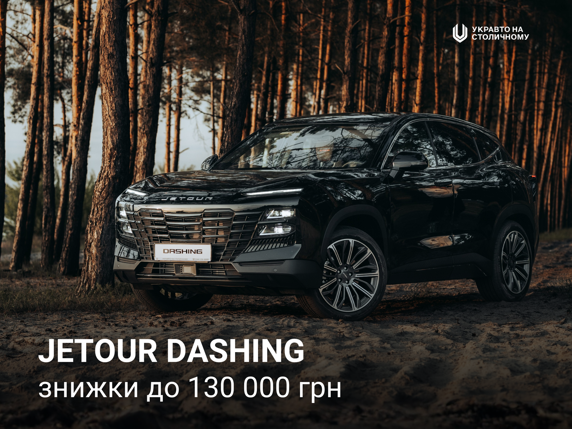 Акційні автомобілі JETOUR DASHING та JETOUR X70 PLUS представлені в салоні офіційного дилера JETOUR УКРАВТО НА СТОЛИЧНОМУ. Чекаємо на вас без вихідних за адресою м. Київ, Столичне шосе, 90. Тел.: (067) 406-80-00